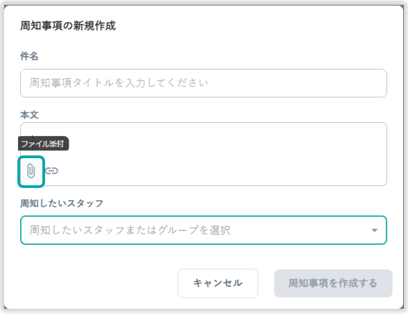 ・スタッフは「通知一覧」の「周知事項」にて内容の確認が可能です