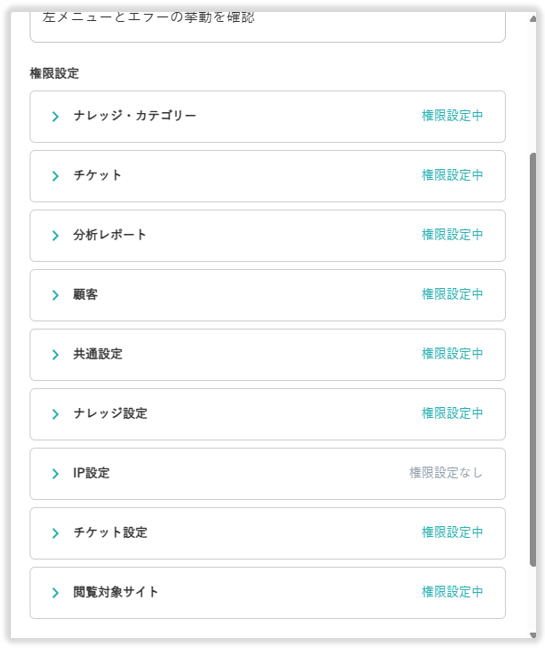 現在あるナレッジ関連の権限項目に加え、チケット機能向けの権限項目が追加されメニューの構成も一部変更となります。