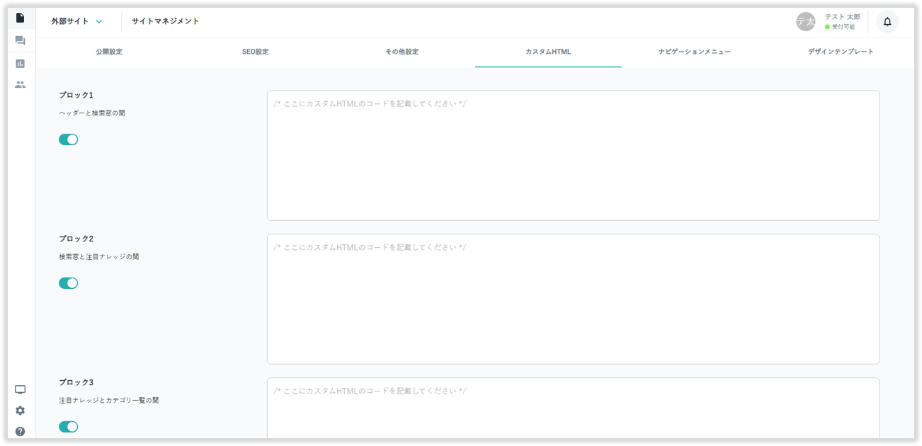 公開ナレッジ・FAQのトップ画面の特定箇所にHTMLで編集・公開が可能なカスタムセクションを追加することが可能となります。