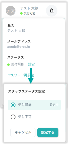 ・「オフライン」※ログアウトすることで自動で「オフライン」に変更になります。