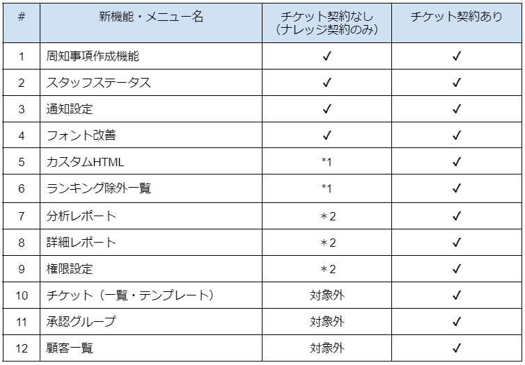 【チケット機能】のご利用には別途「Ticketプラン」のご契約が必要となりますが、ナレッジベースのみのクライアント様に関しましても、システムアップグレードに合わせ一部機能が強化されます。