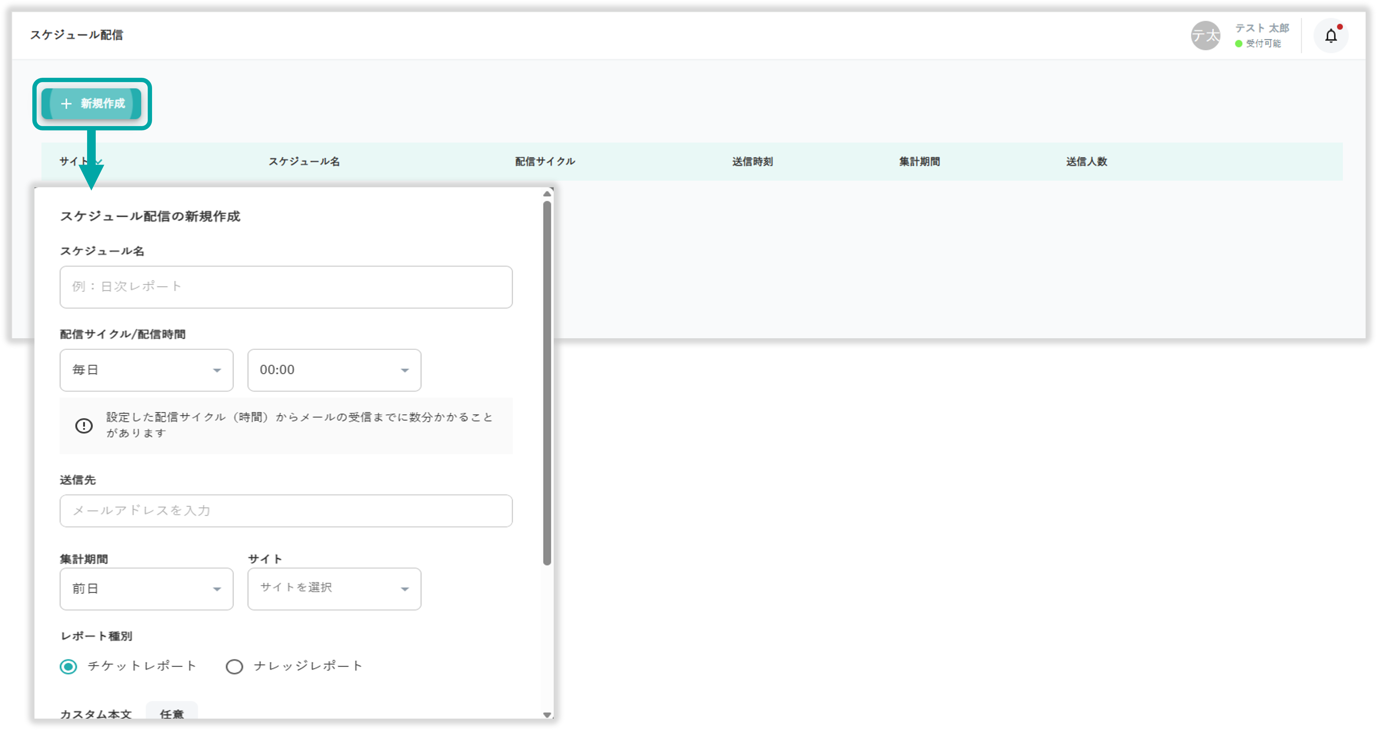 「新規作成」を選択することでスケジュール配信の新規作成が行えます。