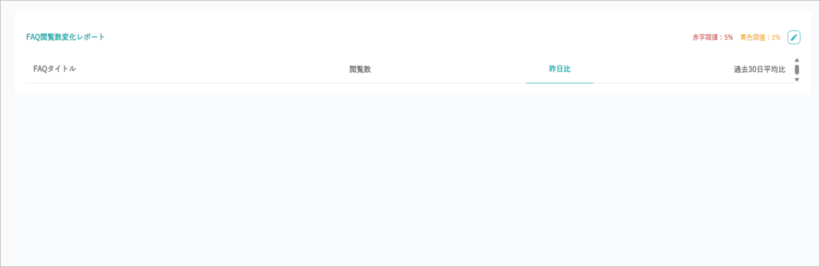 FAQ閲覧変化レポートは「閲覧数」「対昨日比」「過去30日平均比」の各項目の上位10ナレッジが表示されます。