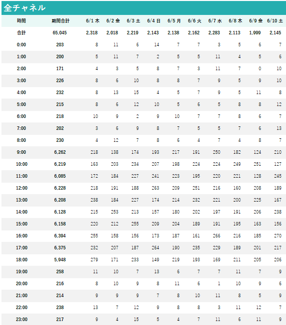 時間帯別受信件数から当日の1時間毎の受信件数、、日別受信件数から過去30日の1日毎の受信件数を確認可能です。