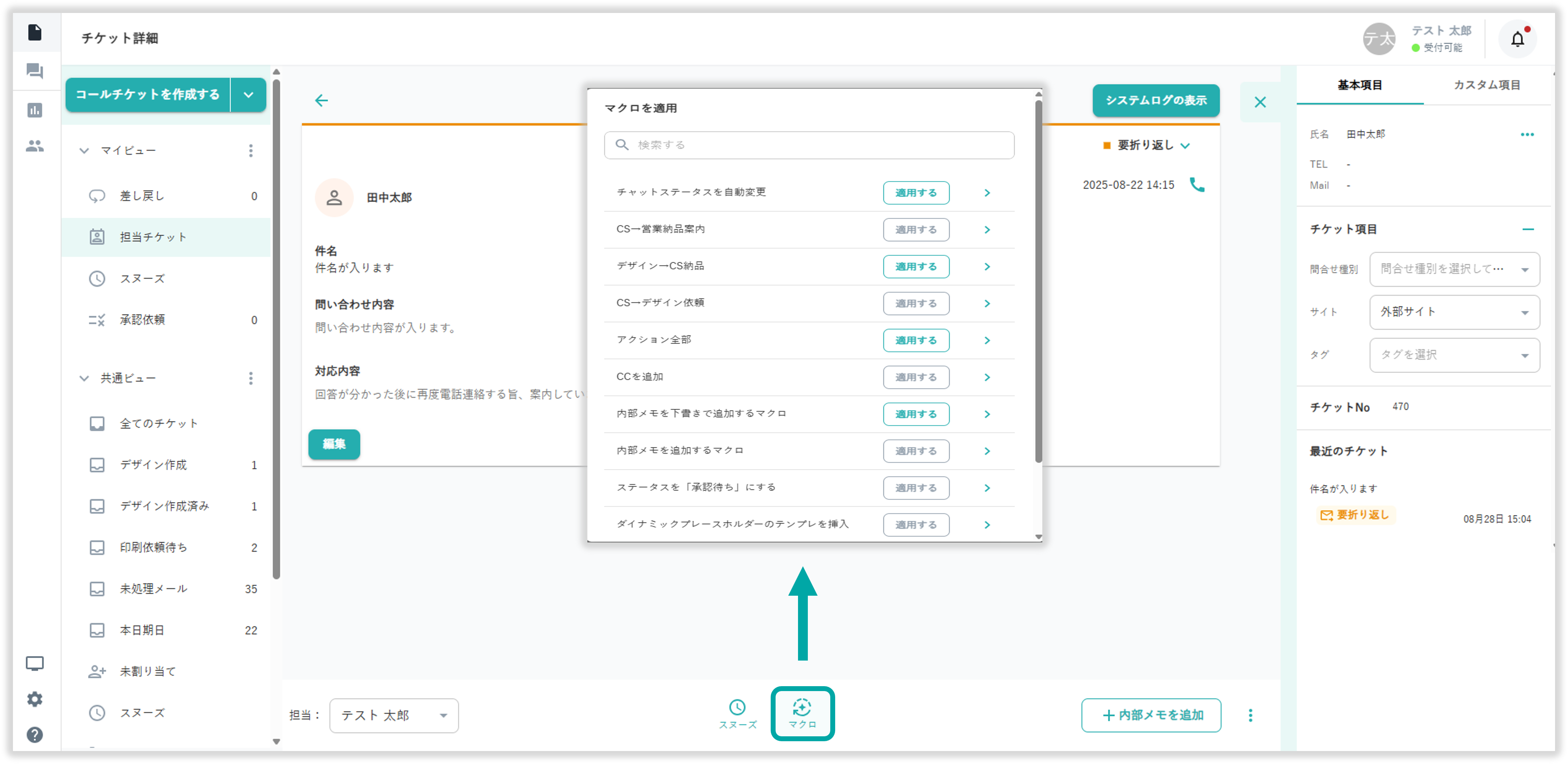 チケットにマクロを適用