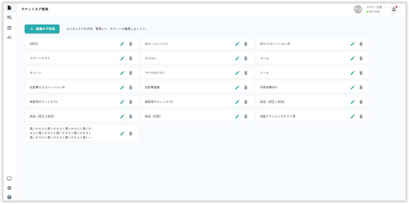 本ナレッジではチケットタグ管理画面についてご説明いたします。