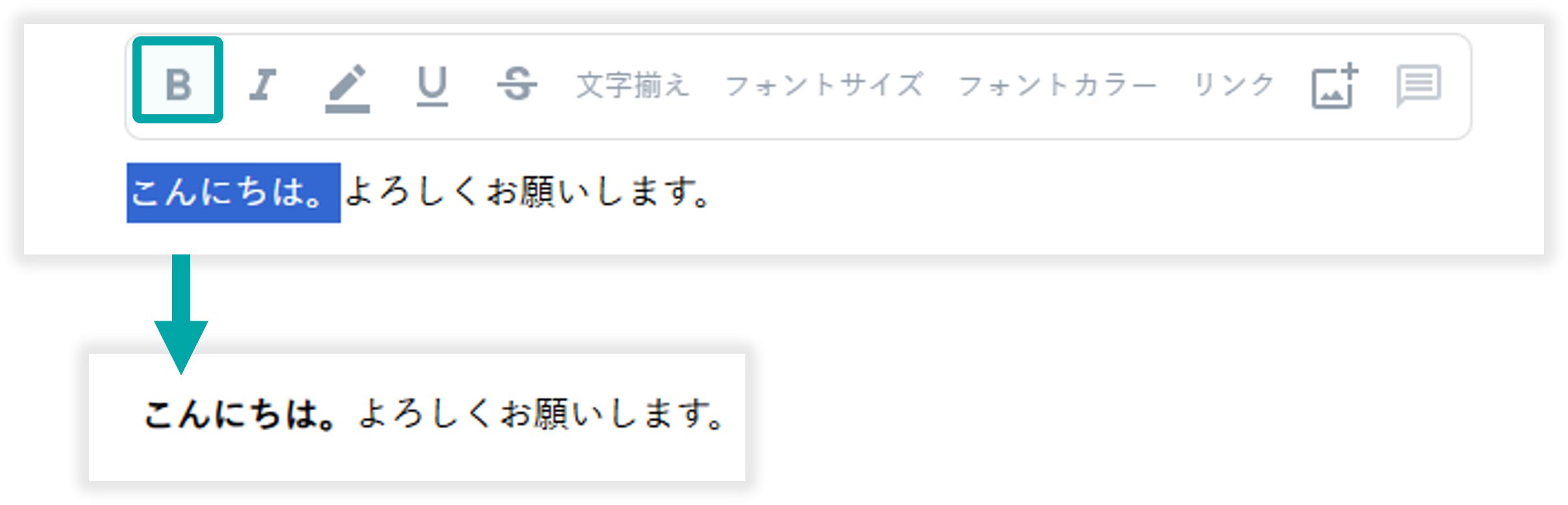 範囲選択したテキストを太字に変更できます。