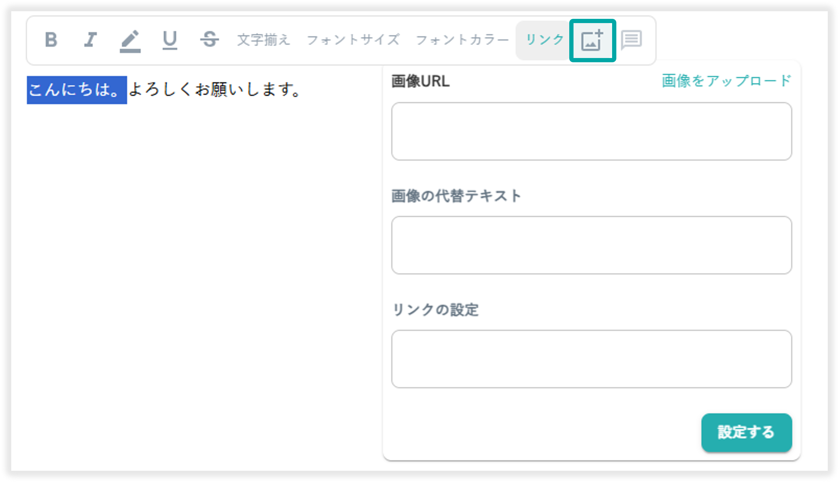 挿入したい画像のURLを設定できます。
