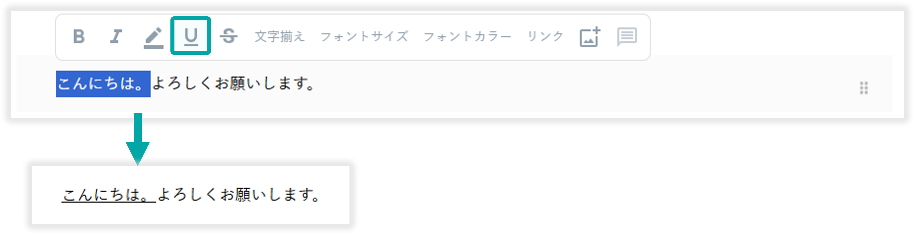 範囲選択したテキストに下線を追加できます。