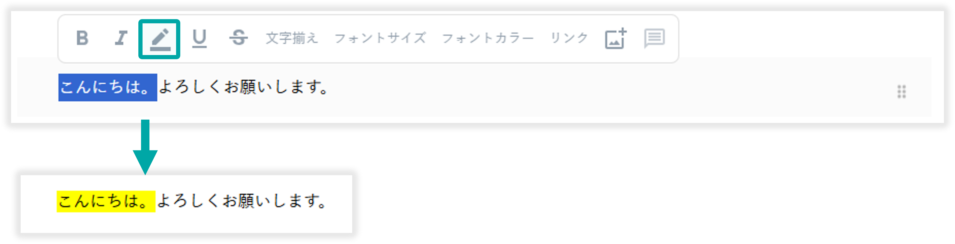範囲選択したテキストの背景を黄色に変更できます。