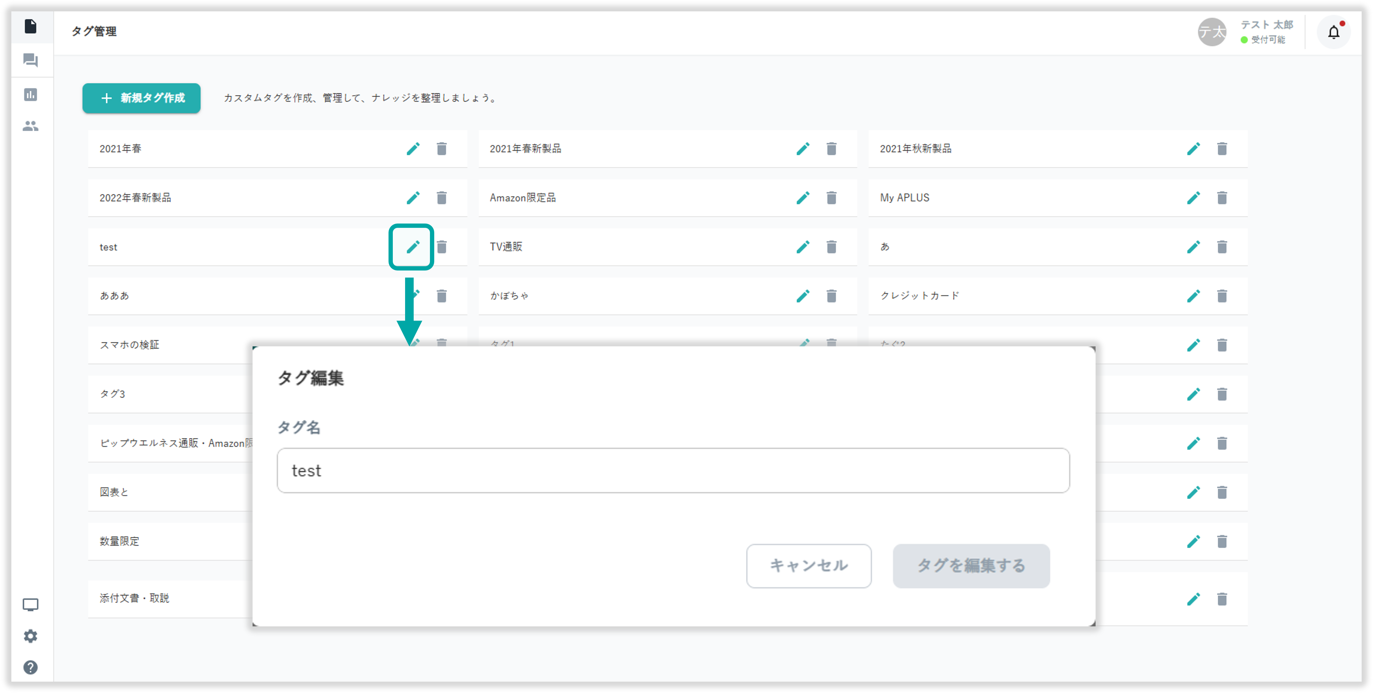 アイコンを選択してナレッジタグの編集が行えます。