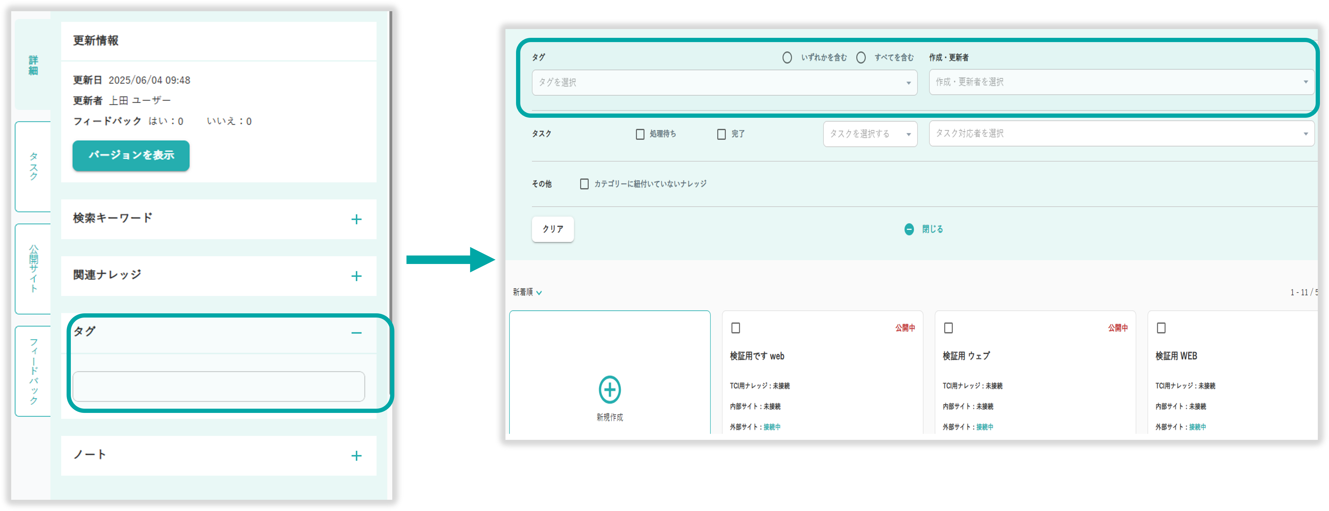 ナレッジにタグを登録する方法こちら