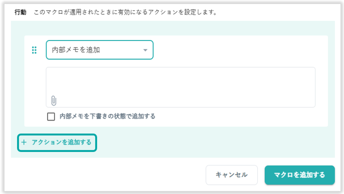 マクロが適用された時に実行されるアクションを設定できます。「アクションを追加する」を選択してアクションの追加ができます。