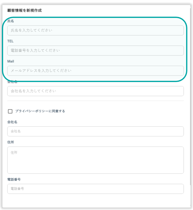 以下の項目は既存項目です。顧客情報登録の際に必ず表示されます。