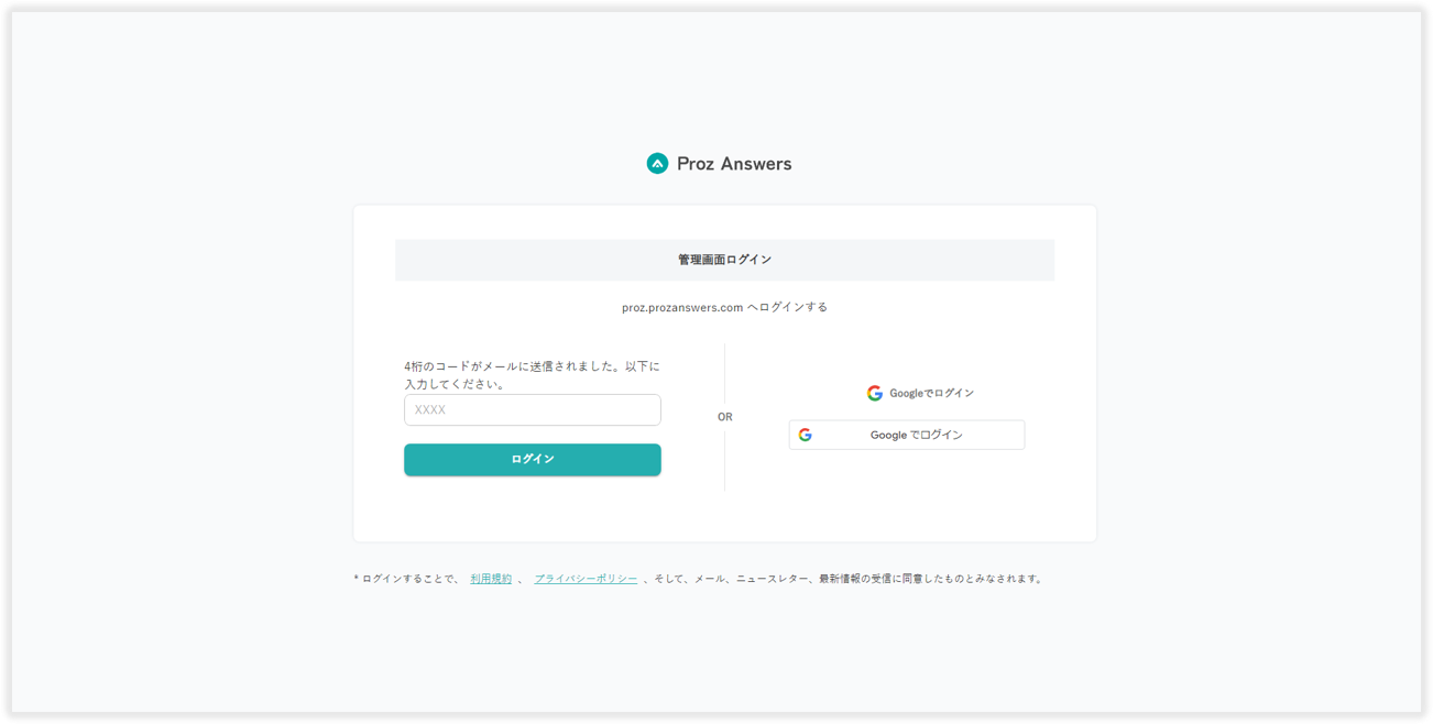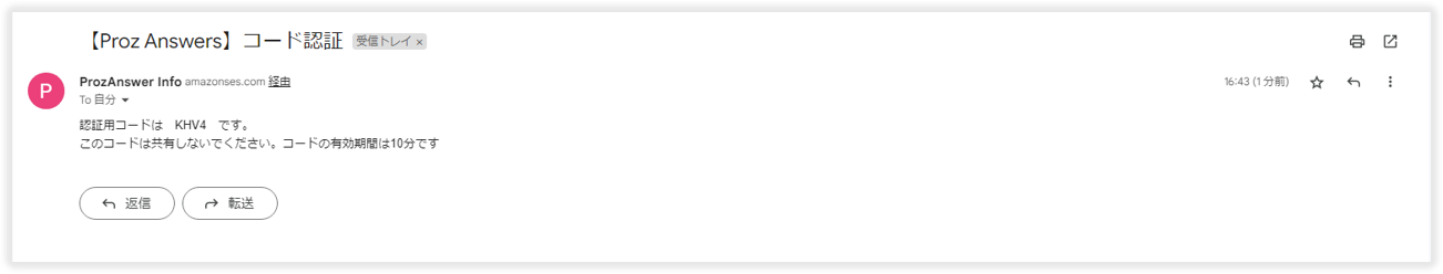 4桁のコードを入力後「ログイン」を選択することで、Proz Answersにログインできます。