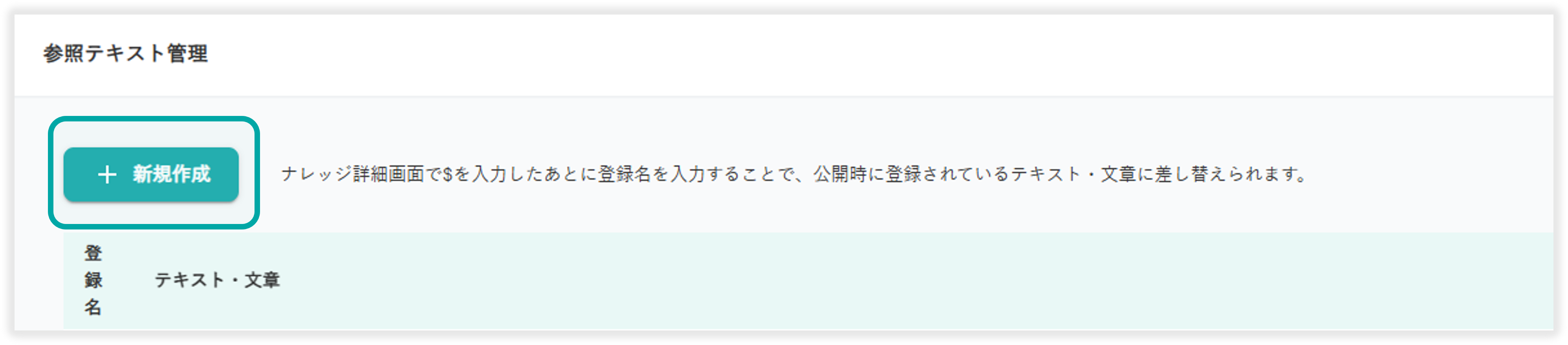 参照テキストは「新規作成」のボタンから登録可能です。