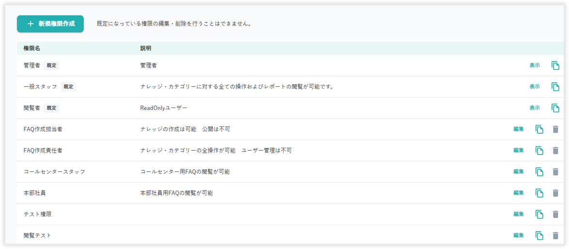※1 既定権限の編集や削除はできません。※2 既定権限も複製は可能です。