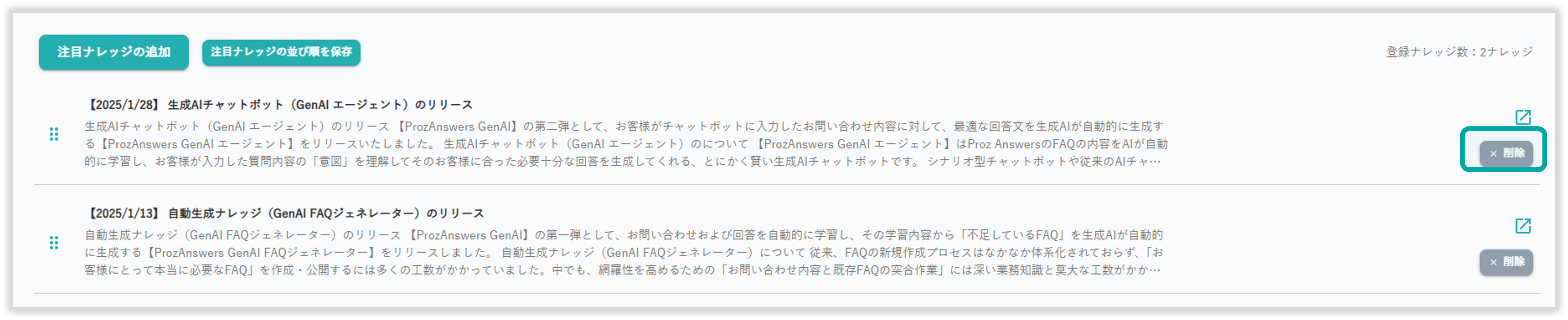 注目ナレッジの削除