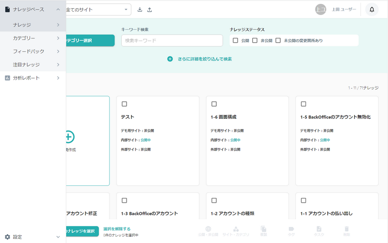 注目ナレッジを選択することで、公開サイトのトップページに任意のナレッジを配置することができます。
