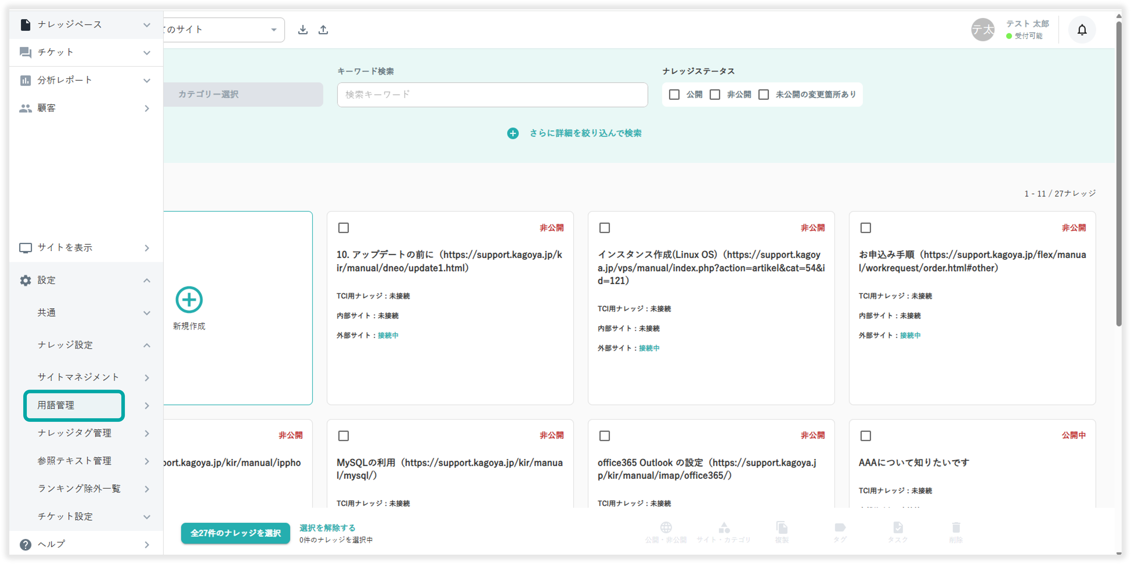 用語管理は「新規作成」のボタンから登録可能です。