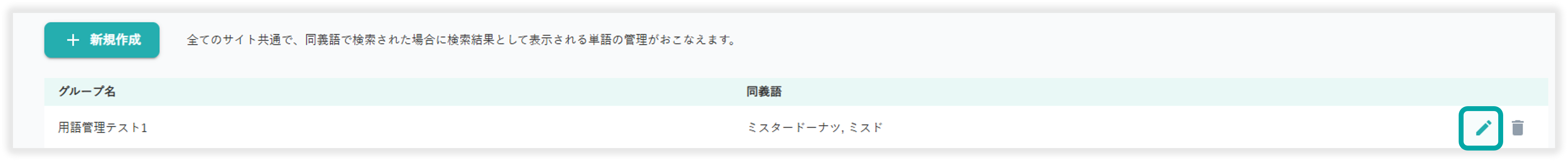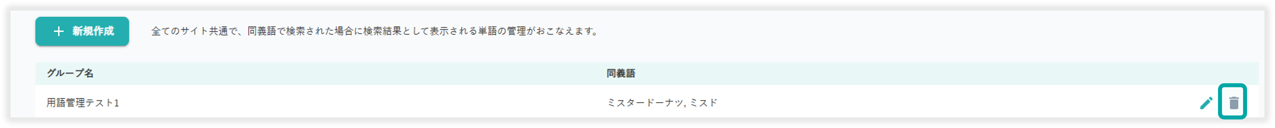 同義語の削除は以下のアイコンから行えます。