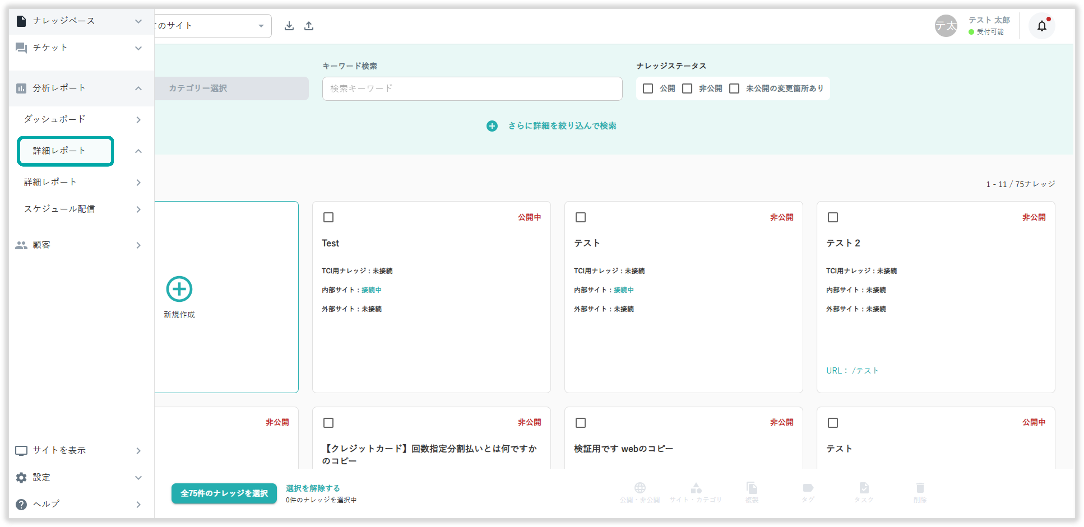 画面左上の「分析レポート」を選択してダッシュボード画面に遷移してください。