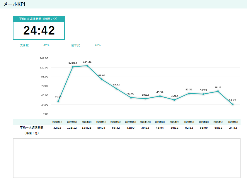 メールKPIはメールチケットの返信にかかった平均時間を月別に確認できるグラフです。