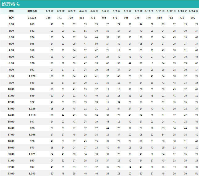 1時間あたりの平均コールチケット受信件数をグラフで確認できます。