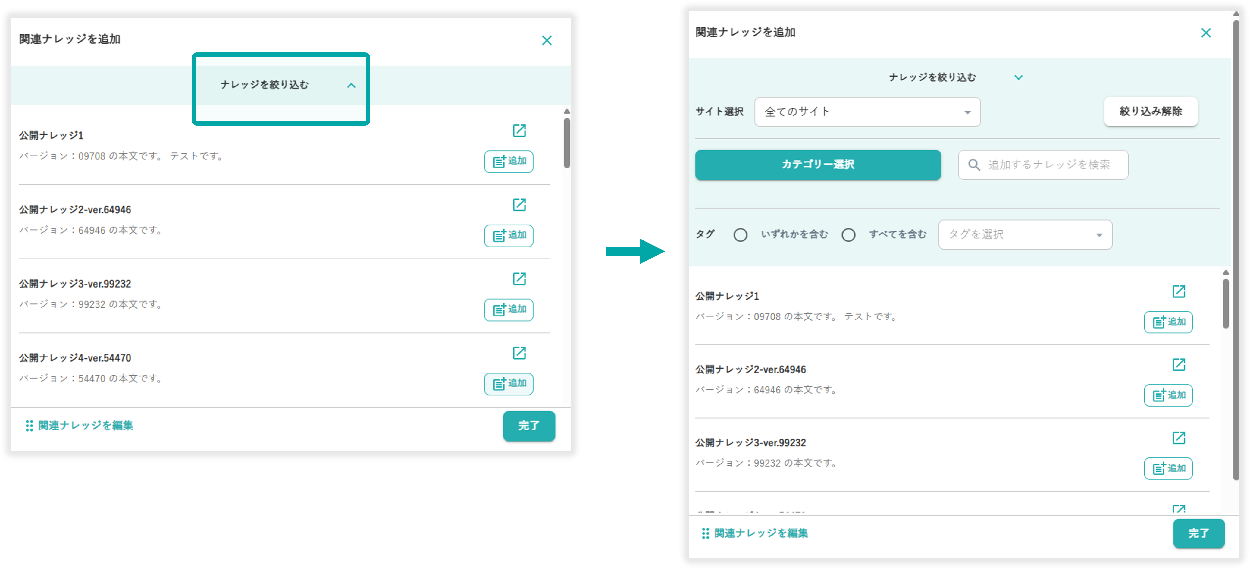 「ナレッジを絞り込む」を選択することで、ナレッジの絞り込みが行えます。