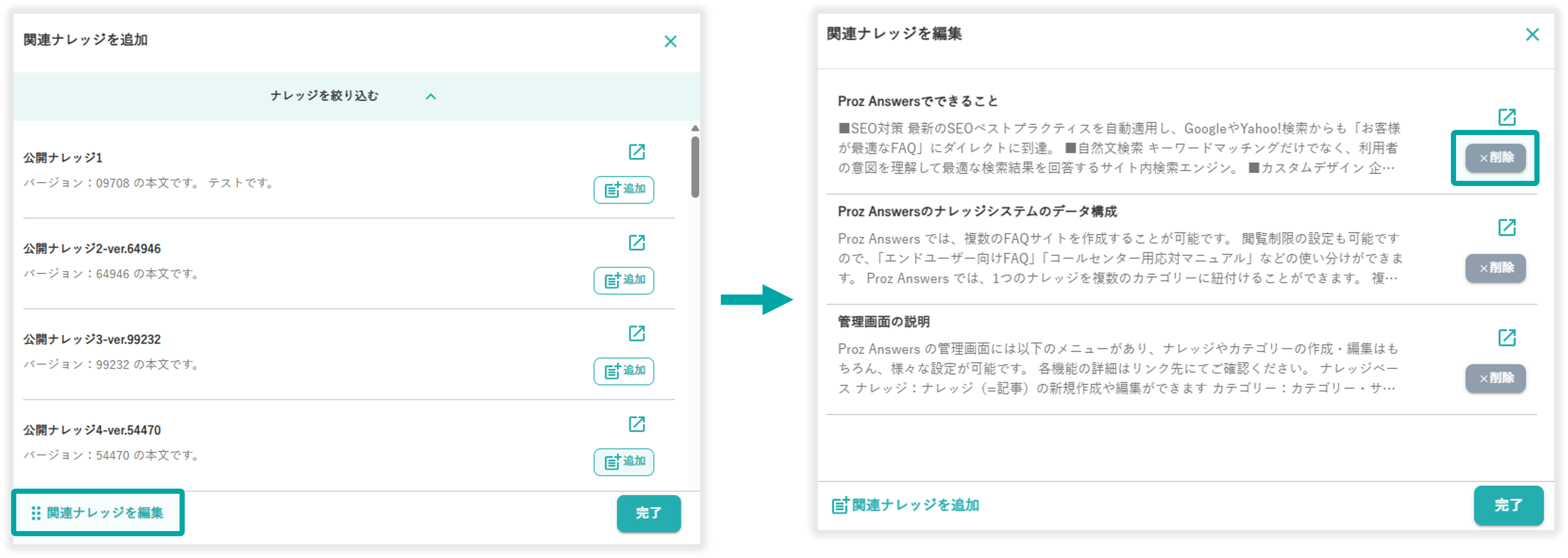 関連ナレッジの削除