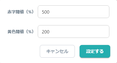 黄色閾値:「昨日比」「過去30日平均比」の値を黄色文字で表示させる閾値を設定できます。