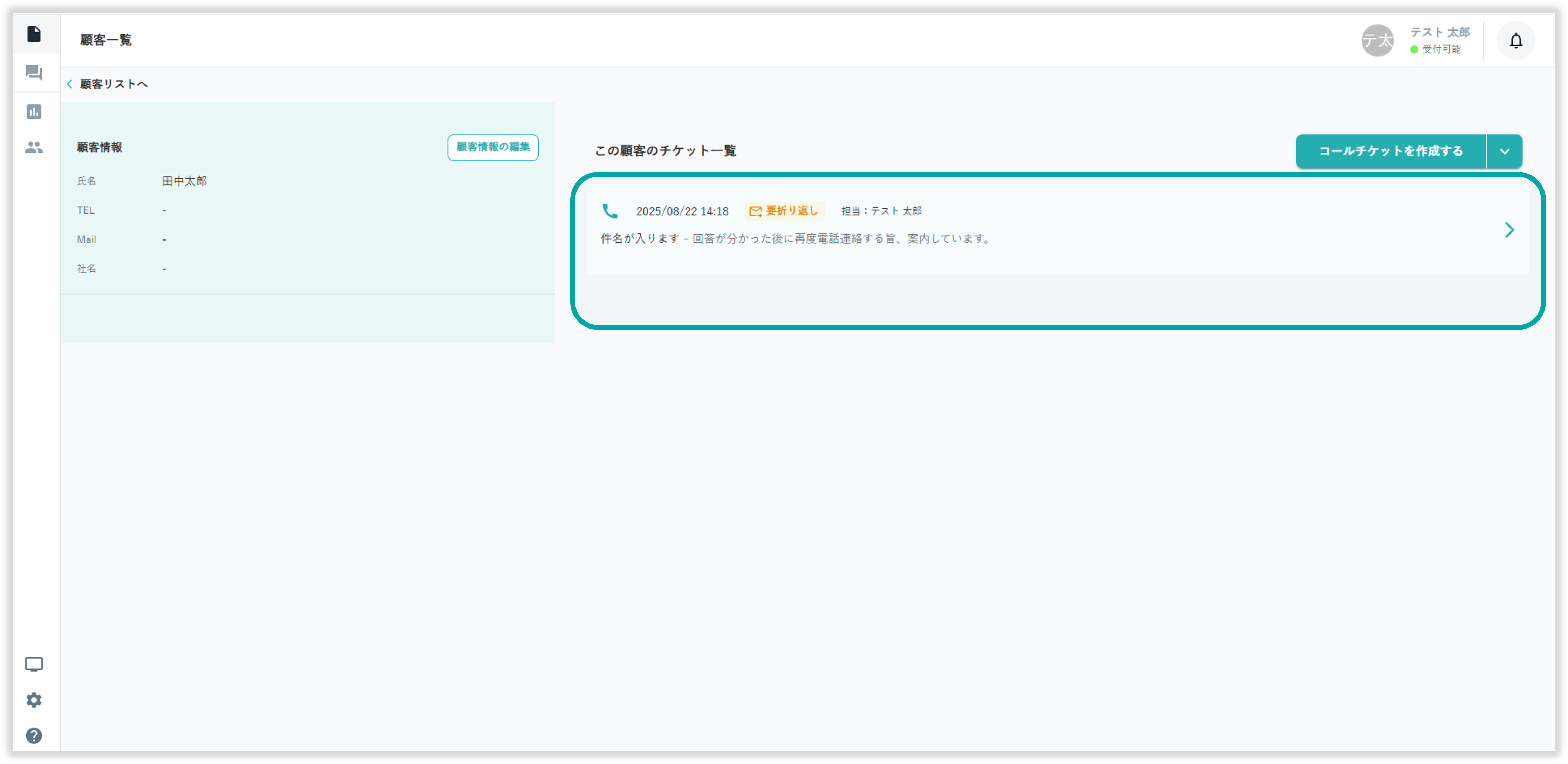 顧客情報詳細画面から選択した顧客の過去チケットを確認できます。